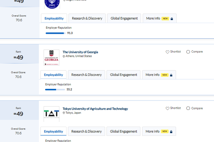 Peringkat 49: IPB University - Indonesia dan Tokyo University of Agriculture and Technology - Jepang.